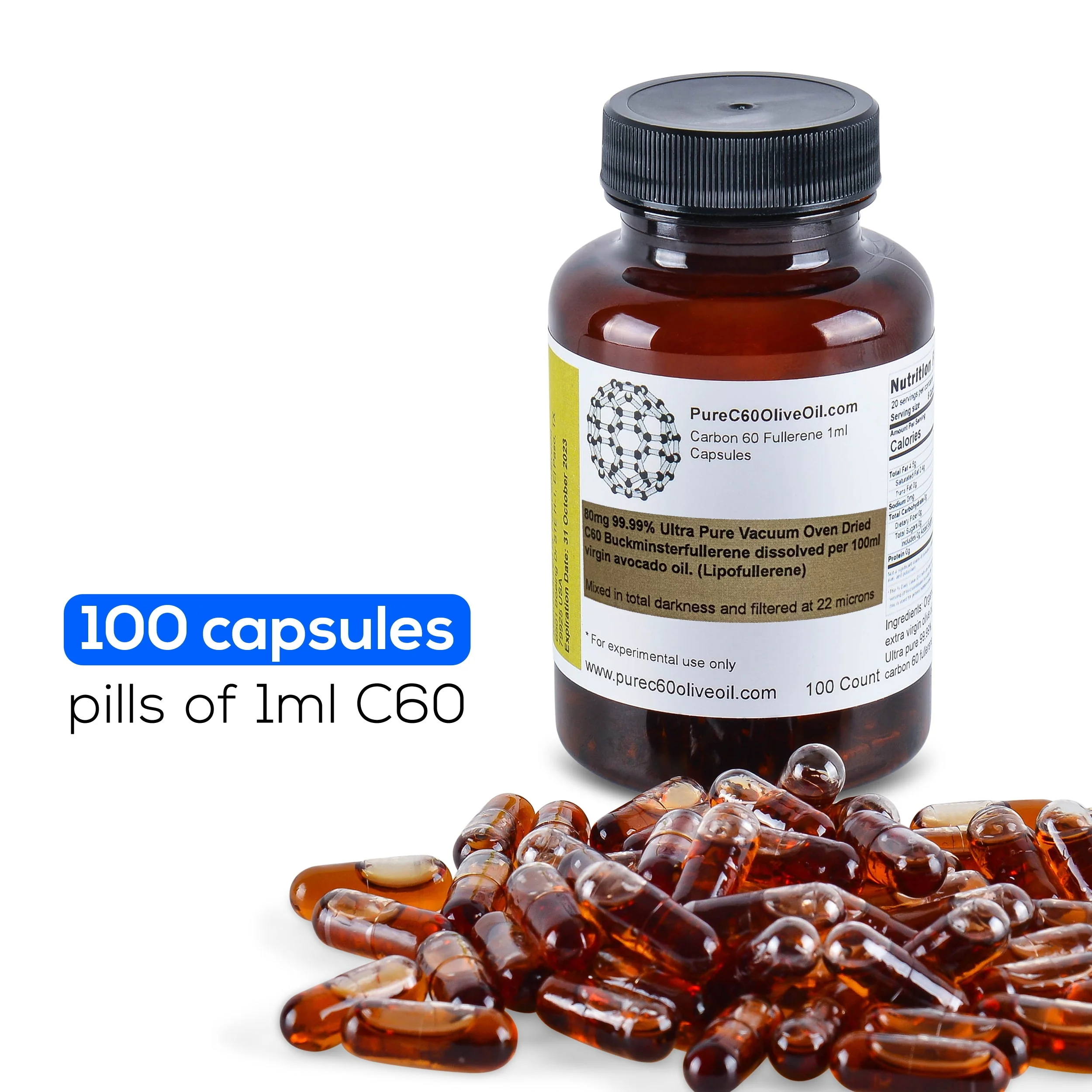 100 capsules / pills of 1ml C60 Avocado Oil